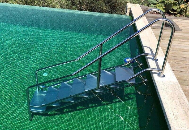 Tuzlu suda paslanmaya ve deformasyona karşı dirençli olan paslanmaz çelik havuz merdivenleri sizler için uygun olacaktır. Paslanmaz çelik havuz merdivenleri aralarında farklılıklar gösterir. 316 krom çelikten yapılmış havuz merdivenleri korozyona karşı ekstra dirençlidir.